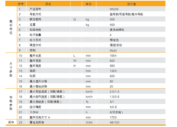 可以牽引不同類型的工作臺車與倉儲籠,非標定制不同起升高度 (210~650mm);手動遙控定位精度達到±0.5mm;激光避障傳感器消除安全隱患,通過激光導航、磁導航、視覺導航實現(xiàn)智能無人化;安裝專用屬具,適應不同工況,選配鉛酸蓄電池或鋰電池。