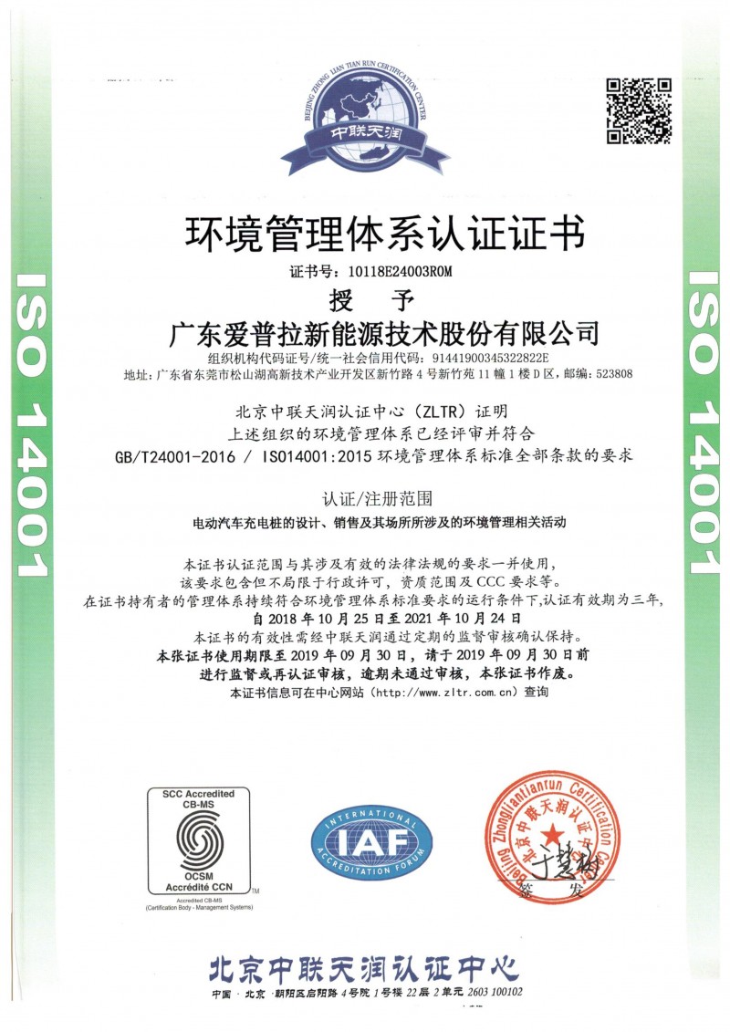 發證機構:   中聯天潤 發證時間 :   2018-10-25