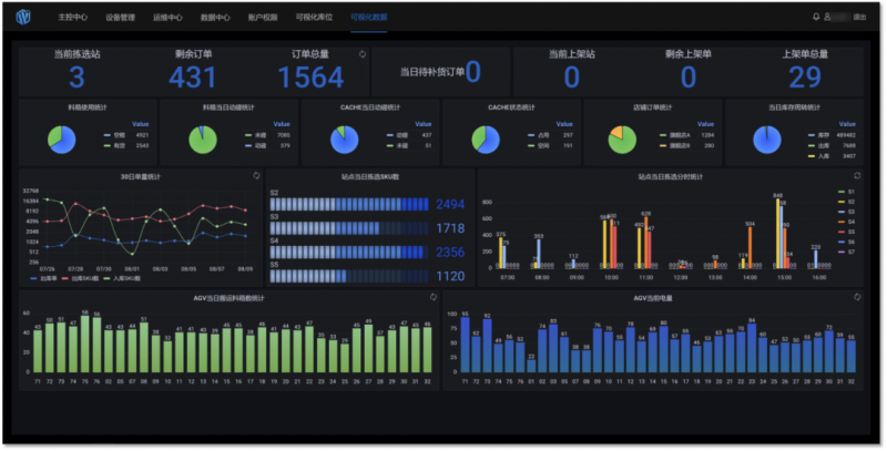 任務(wù)狀態(tài)可視化、設(shè)備運(yùn)行狀態(tài)可視化、庫位使用情況可視化。