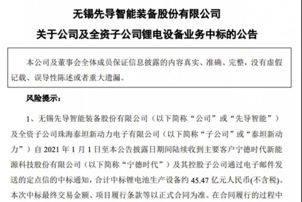 先導(dǎo)智能:今年累計(jì)中標(biāo)寧德時(shí)代鋰電設(shè)備約45億元