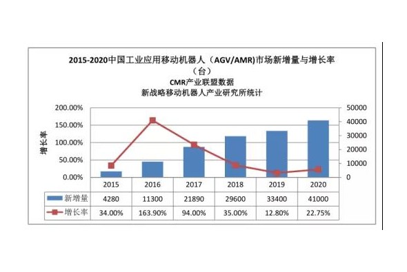 2020年中國市場(chǎng)AGV/AMR新增量41000臺(tái),市場(chǎng)規(guī)模76.8億元