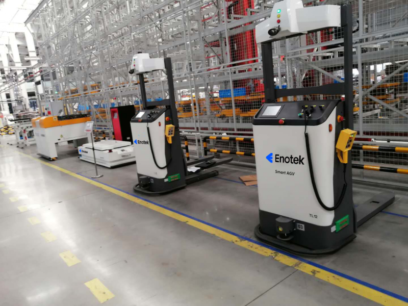 項目中除應用了安歌科技自主研發的堆垛機外,同時將AGV大量的運用到了工廠內的生產流程中,擔任著物流搬運的重要角色。