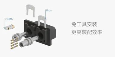 配置靈活和安裝便捷:電源插針采用壓接和螺紋連接兩種方式,可適配6~25mm²線纜,覆蓋40~100A電流,根據客戶需求單獨選配,實現靈活配置。同時, 采用卡扣鎖緊方式,無需工具即可手動安裝插針,提升裝配效率。