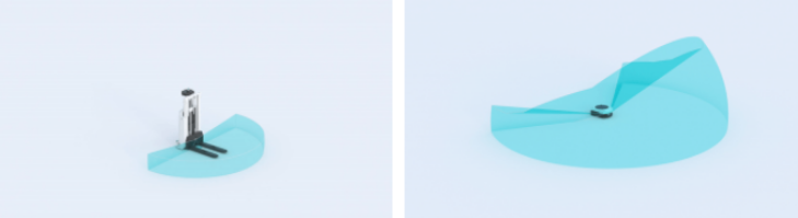 相較于傳統360° 16線或32線機械式激光雷達,Mid-360在性能等同基礎上擁有體積更小、成本更低的巨大優勢;若與當下主流混合固態主激光雷達比較,Mid-360首次將FOV擴大至360°,可憑小巧軀身覆蓋車身四周全視場角,讓無人化運行離安全更“近”一步;而與工業機器人領域常見的單線激光雷達相比,Mid-360又在維持相似體積大小情況下,增加了垂直方向密集的點云輸出,將工業機器人感知帶入立體3D時代。
