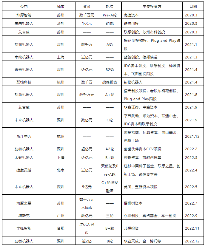 圖表:2020-2022國內(nèi)無人叉車市場融資情況(不完全統(tǒng)計(jì))