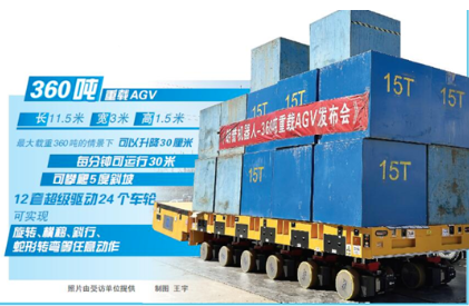 朗譽(yù)機(jī)器人360噸重載AGV近期成功下線,該產(chǎn)品能實(shí)現(xiàn)升降行程300mm,最大承載360噸,最大運(yùn)行速度30m/min,爬坡能力5°,續(xù)航時間大于8小時,充電時間只需要3小時,控制方式為遙控駕駛,后期可以做無人駕駛升級,防護(hù)等級為IP66,并獲得歐洲CE安全認(rèn)證的重載AGV。