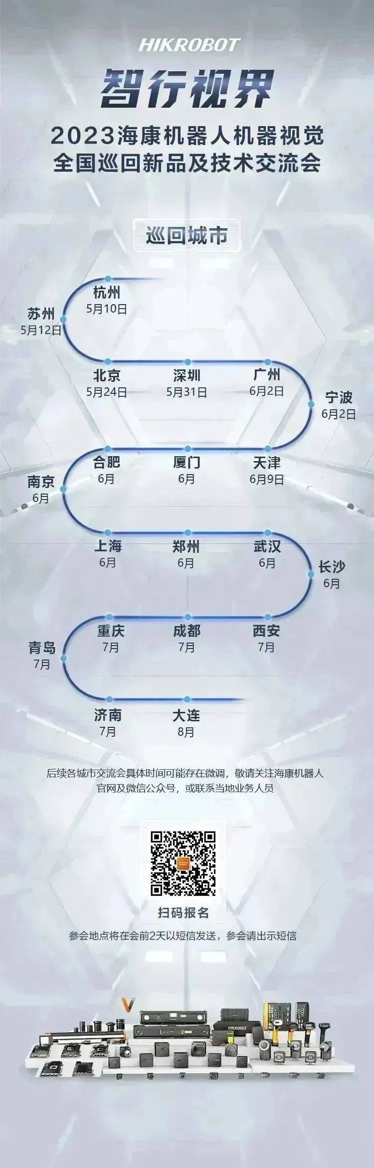 5月10日,時入立夏,萬物繁盛伊始,智行視界——2023??禉C器人機器視覺全國巡回交流會首站在杭州拉開序幕,熾熱的智造生態圖景由此展開。交流會全面解析并展示了機器視覺新技術、新產品和新思路,來自不同行業的近500位客戶及合作伙伴出席活動。海康機器人期待與各位共建開放兼容、賦能智造的新生態。