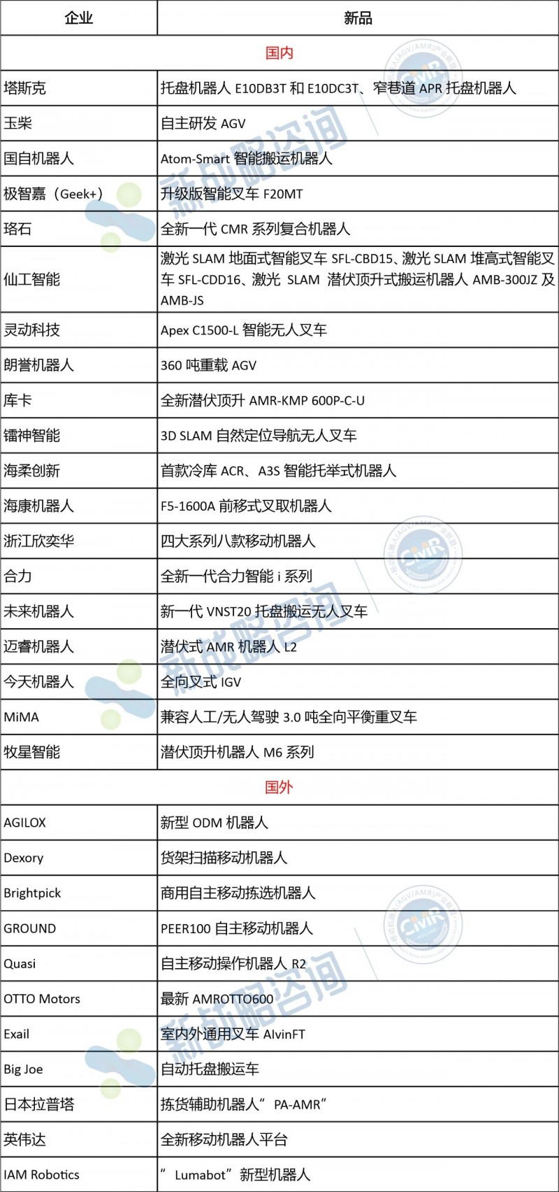 根據CMR產業聯盟數據,新戰略移動機器人產業研究所不完全統計,2023年上半年,國內外移動機器人企業推出AGV/AMR新產品近50款,類型豐富!