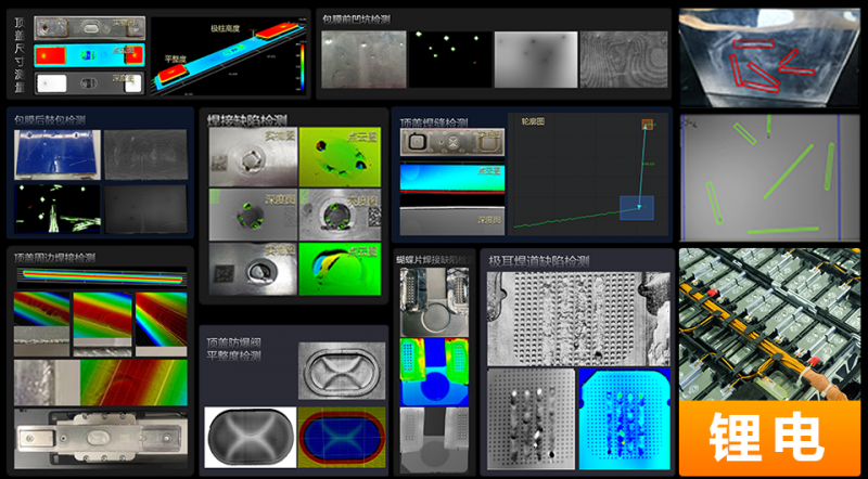 ??禉C器人3D解決方案完整覆蓋鋰電中段工藝,其中包括極片入殼前極耳焊接缺陷檢測、入殼后頂蓋焊縫尺寸測量、頂蓋周邊焊接缺陷檢測、頂蓋平整度檢測、注液封口后密封釘缺陷檢測、六面檢等。