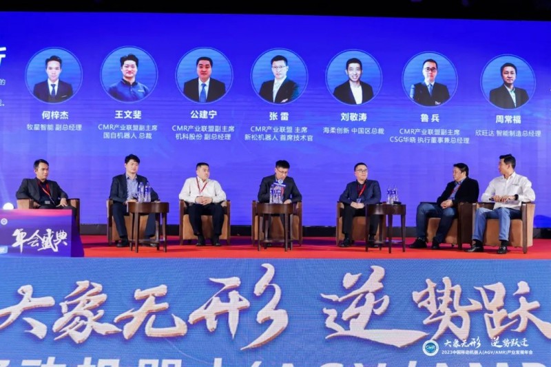 2023年12月13日,在“2023中國移動機器人(AGV/AMR)產業發展年會-AMR新技術融合專場”的圓桌討論環節,CMR產業聯盟主席、新松機器人首席技術官張雷,CMR產業聯盟副主席、國自機器人總裁王文斐,CMR產業聯盟副主席、機科股份副總經理公建寧,CMR產業聯盟副主席、CSG華曉執行董事兼總經理魯兵,海柔創新中國區總裁劉敬濤,牧星智能標品事業部總經理何梓杰以及欣旺達智能制造總經理周常福圍繞“制造、物流智能化升級過程中移動機器人參與的廣度與深度、中國移動機器人全球化進程中的機會與挑戰、直面行業弊端,如何理性參與行業競合”等本年度熱點話題,分享企業在新業態下的發展思路與成功經驗。
