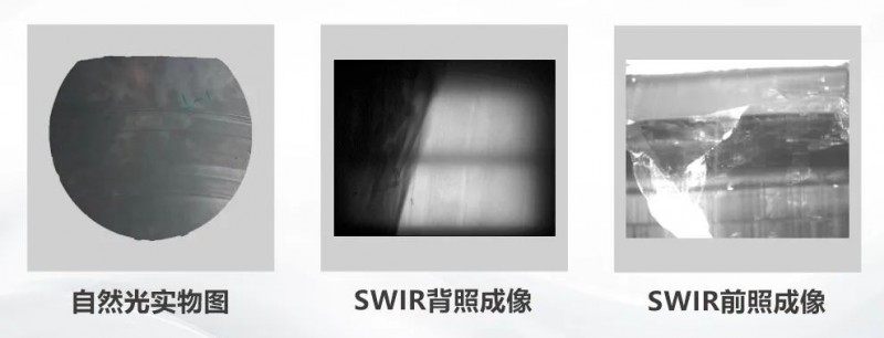 SWIR可以透過多種材料。如不同材質(zhì)的物品,在特定的紅外波段下,會根據(jù)吸收、反射程度而呈現(xiàn)透明、半透明、白色、黑色等不同狀態(tài),適用于同色材料分選,塑料內(nèi)部填充物檢測、深色物品內(nèi)部劃痕等。