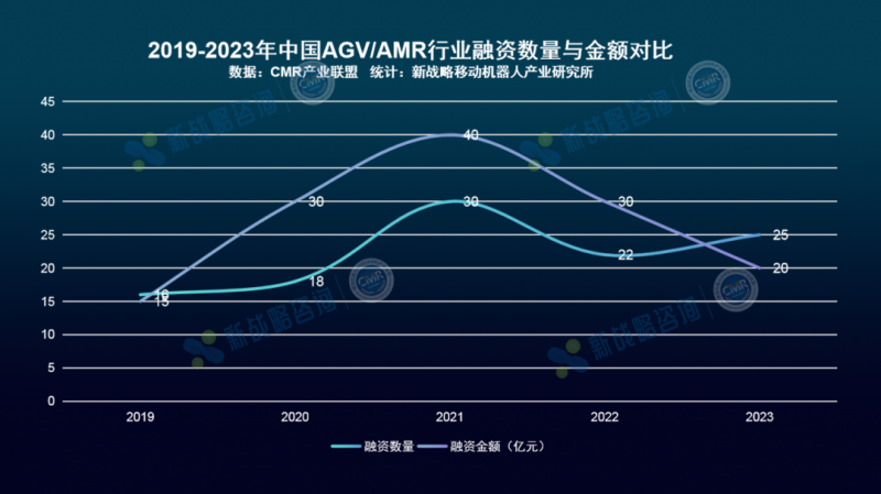 圖表:2019-2023年中國AGV/AMR行業融資數量與金額對比