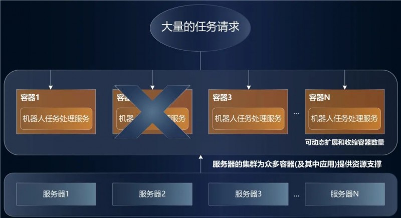 HikRobot HA高可用集群系統(tǒng)可將大量的任務(wù)請求分發(fā)到不同的容器上,同時,可以根據(jù)應(yīng)用程序的資源需求動態(tài)分配容器數(shù)量。