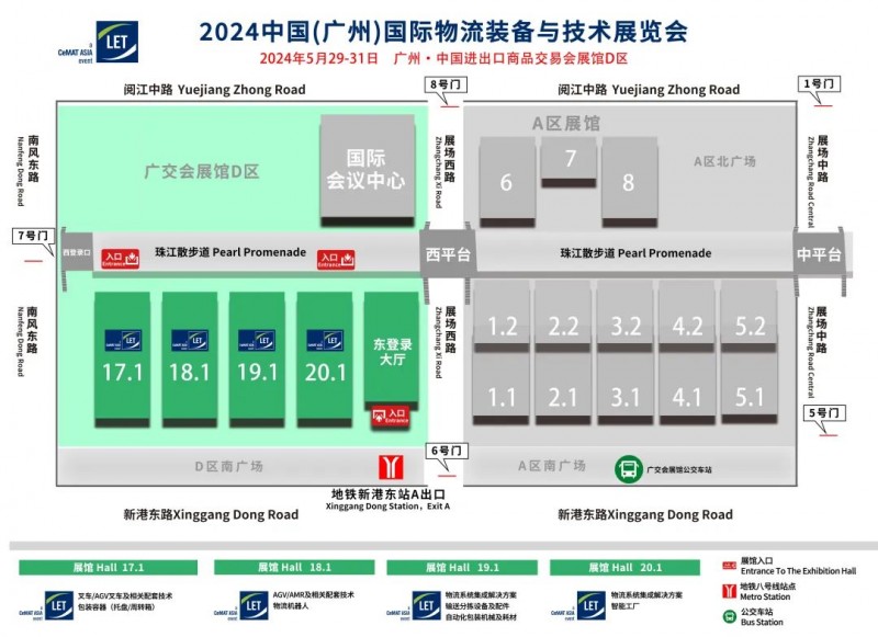 廣州地鐵8號線“新港東站A出口”,步行至廣交會D區(qū)展館6號門進入登錄大廳。