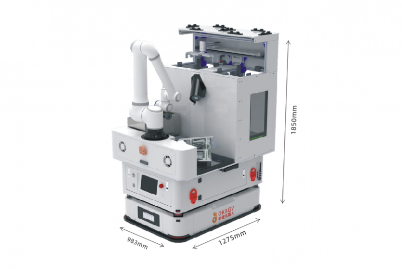 歐鎧復(fù)合機(jī)器人是基于AGV搭載多軸機(jī)械臂組成,結(jié)合ERP/MES等信息系統(tǒng)的指令,復(fù)合機(jī)器人與信息系統(tǒng)結(jié)合運(yùn)作。調(diào)度人員通過系統(tǒng),向復(fù)合型機(jī)器人下達(dá)物料運(yùn)輸、上下料的指令,車間智能化由此形成。