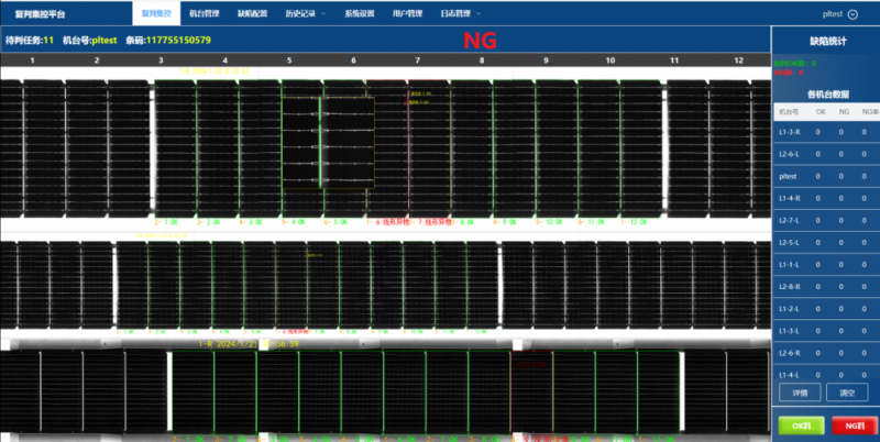 為了更好地追溯電池組件的全流程質量,海康機器人定制開發了光伏組件決策看板,從單站檢測到各個機臺的集控復判,整個工廠的數據匯總、運行狀態一目了然。