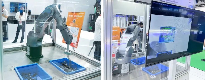 該環(huán)節(jié)還展示了覆膜碼讀取方案、疊焊檢測方案、光伏接線盒抓取方案。