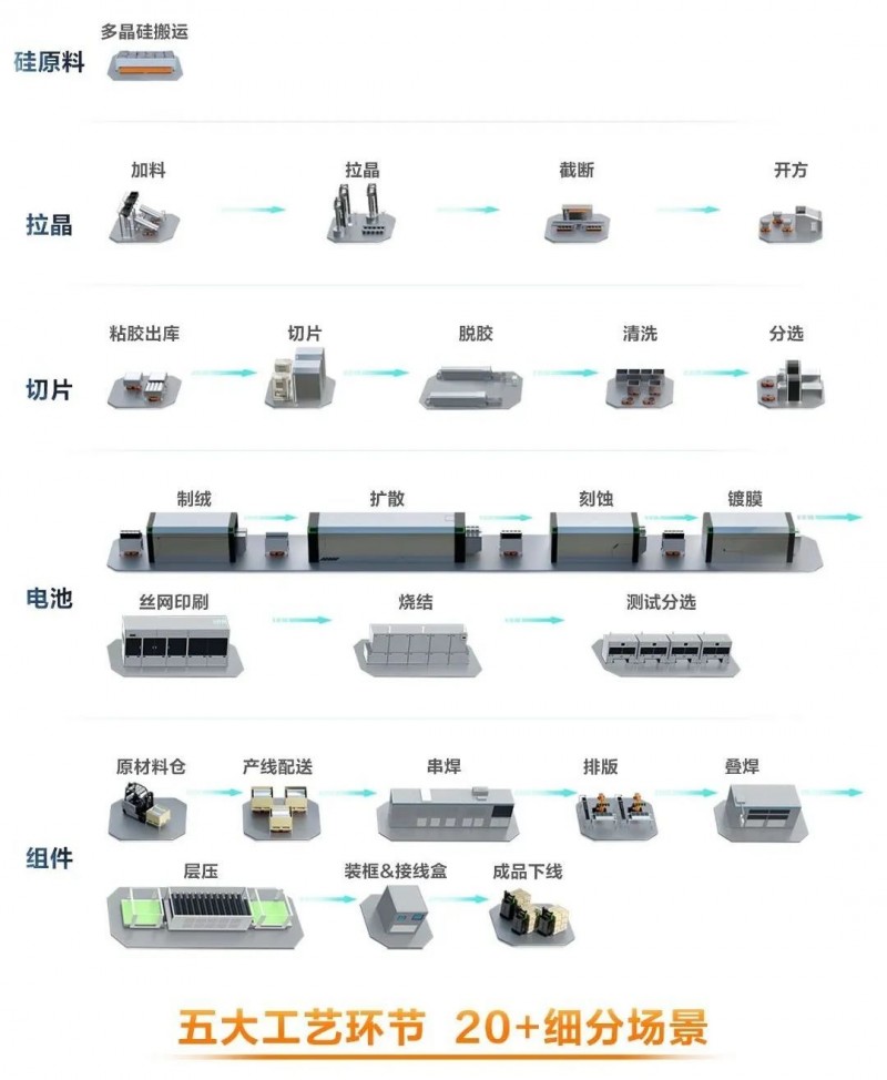 目前,海康機器人已打造覆蓋光伏五大工藝環(huán)節(jié)20+細分場景的方案,驅(qū)動光伏產(chǎn)能與品質(zhì)雙升級。