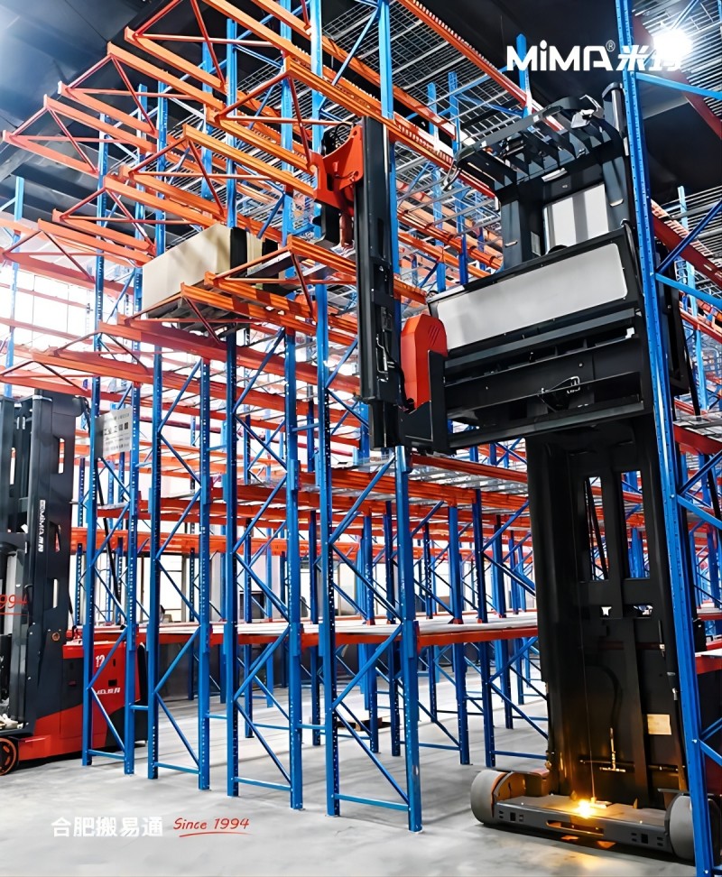 這款MiMA雙深位人上型三向叉車MCC12,其產品設計和功能均達到了國際先進水平。獨特的雙深位伸縮貨叉設計,與MiMA人上型三向叉車的車體完美融合,使叉車能夠自如地在超窄巷道(VNA)中作業,輕松完成雙深位貨架后排貨物的精準存放與堆垛,極大地提高了倉庫存儲密度和貨物周轉率。