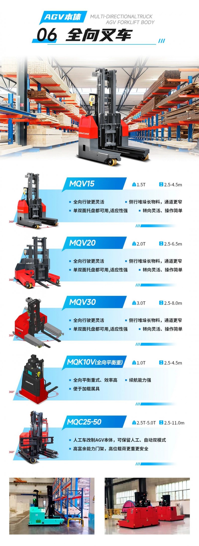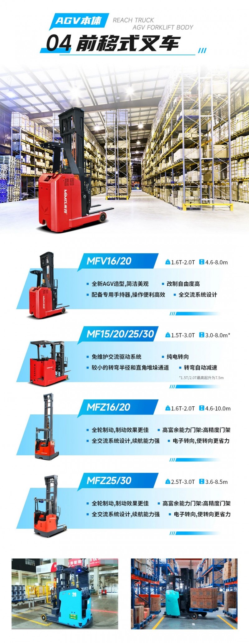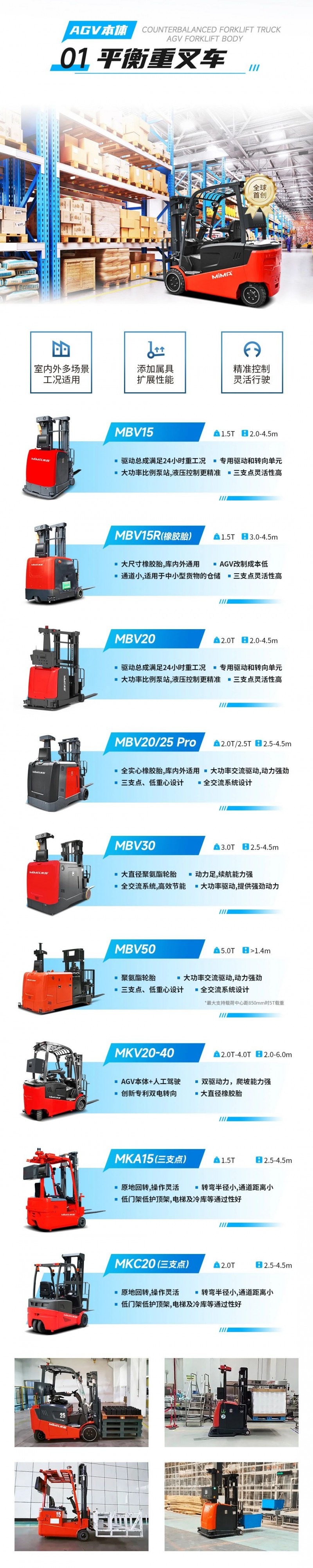 合肥搬易通MiMA米瑪|全系列專業AGV叉車本體產品矩陣