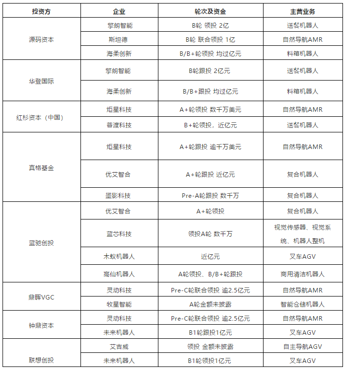 表:各大資本近年移動機器人行業投資一覽(表中金額均為每輪融資總金額,僅為參考,不代表資方的實際投資金額)