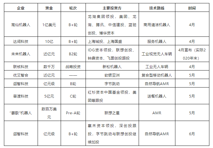 除工業應用移動機器人外,二季度獲得融資的還有聚焦于清潔機器人應用的高仙、云端服務機器人企業達闥科技以及送餐機器人企業普渡科技,疫情原因,商用移動機器人落地速度加快,經過前期的落地應用,部分技術成熟的企業脫穎而出,也得到了資本方的認可。