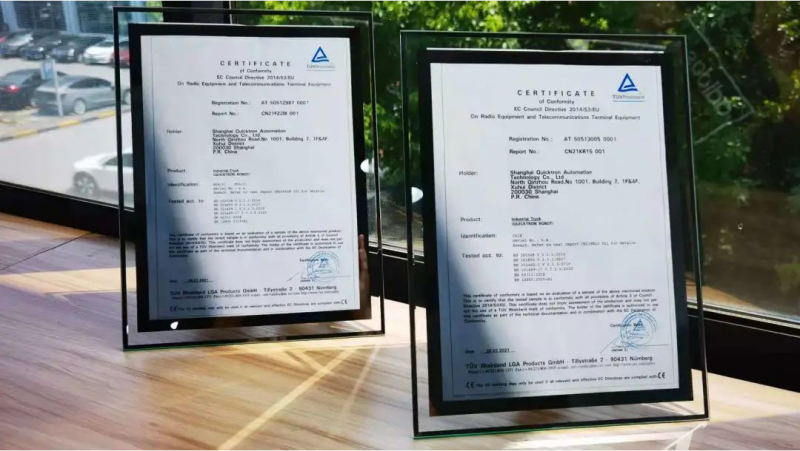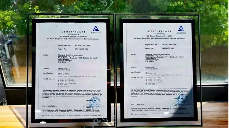 目前,快倉所有M系列潛伏式機器人皆符合最新CE認證標準,此次全指令CE證書中包括MD機械安全指令(2006/42/EC)和RED無線指令(2014/53/EU)。