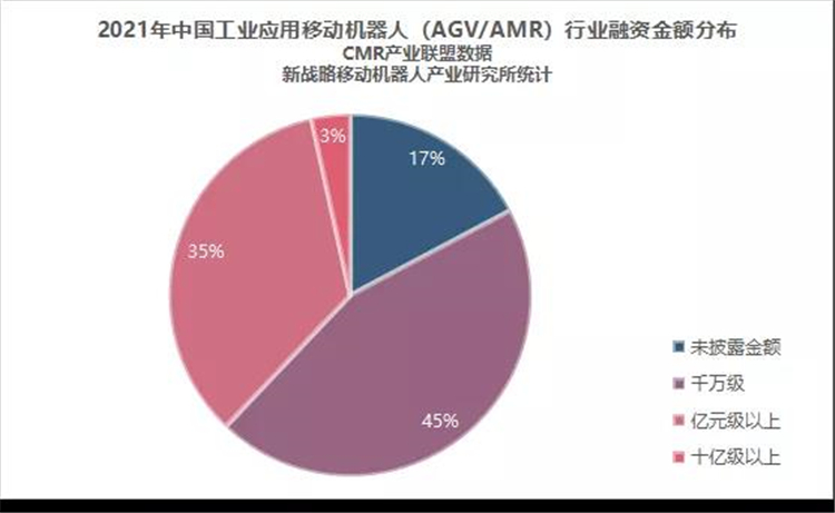 圖表:2021年中國(guó)工業(yè)應(yīng)用移動(dòng)機(jī)器人(AGV/AMR)行業(yè)融資金額分布