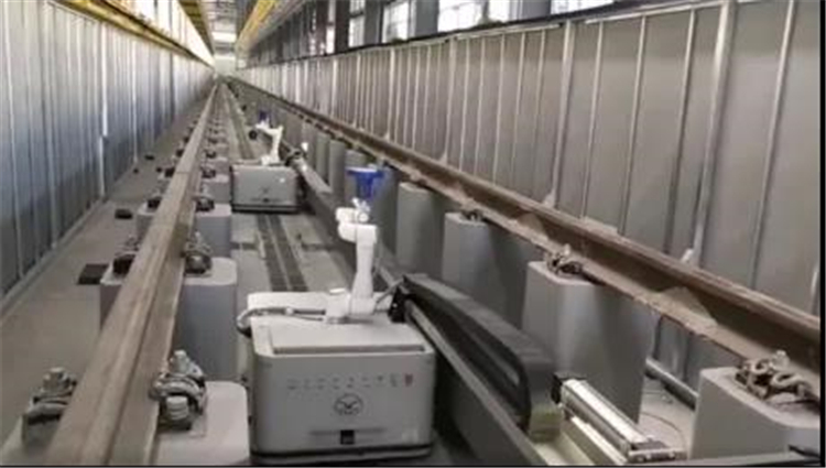 目前客戶開始使用這套設備對軌道線路道床、扣件和鋼軌常見巡道這三大系統的十多項標準進行精準檢測,無論是扣件缺失、斷裂、浮起,鋼軌出現裂縫,道床出現積水、異物等,都能及時發現并報送。使用協作機器人+AGV方案替代人工檢車實現了軌道巡檢過程中的“安全、高效、精準”,將人員從繁重、惡劣的工作中解放出來,從而提升了整體運營效率。