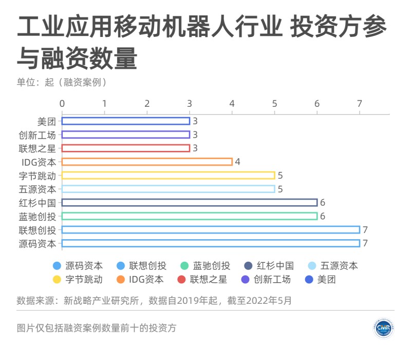 圖片:工業(yè)移動機器人行業(yè)十大資本方參與融資情況【統(tǒng)計時間為2019年-2022年5月,不完全統(tǒng)計】